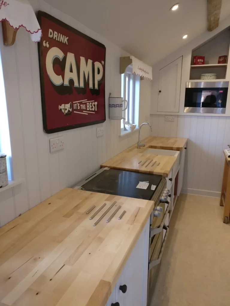 The charming galley kitchen has all the machines and tools that you need to cook with ease. As well as a gas cooker, there is a microwave and a dishwasher, too.
